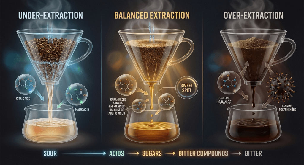 روشهای عصارهگیری: استفاده از ابزارها و تکنیکهای دمآوریِ دقیق و کنترلشده مانند پوراور (Pour-over) یا V60.